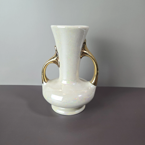 Vintage Decorative Vase with Iridescent Pearl Glaze and Gold Trim